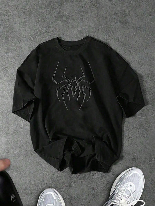 Manfinity Sport Corelite Men'S Botanical Print round Neck Short Sleeve Sports T-Shirt for Summer Workout Clothes Running Tees & Tanks, Black T-Shirt, Spider T-Shirt