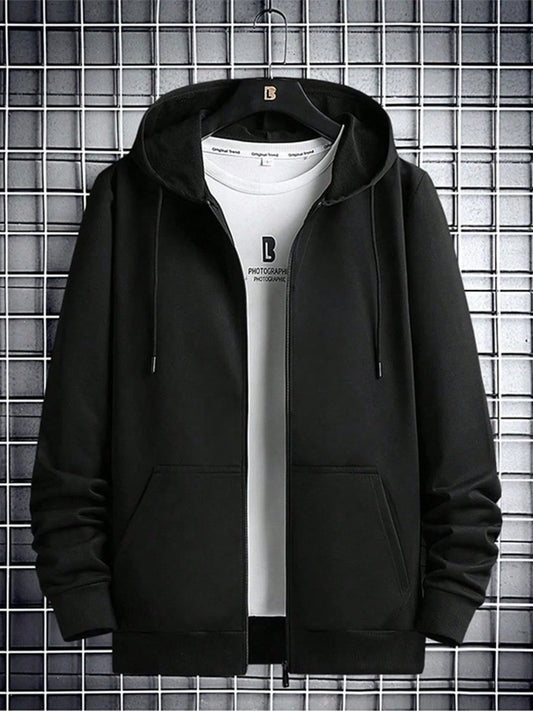 Men'S Lightweight Cardigan Hoodie for Autumn and Winter, New Korean-Style Slim Fit Casual Solid Color Jacket for Young Men.
