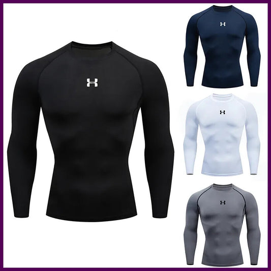 Men Running Compression T-Shirt Long Sleeves Sport Tees Gym Fitness